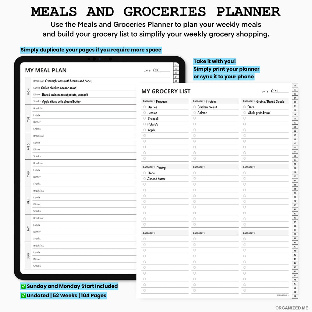 Make meal planning and grocery shopping effortless. Stay organized with weekly meal plans and shopping lists all in one place. With duplicatable pages, you'll never run out of space to plan your meals and organize your groceries. Save time, reduce stress, and make shopping trips more efficient.